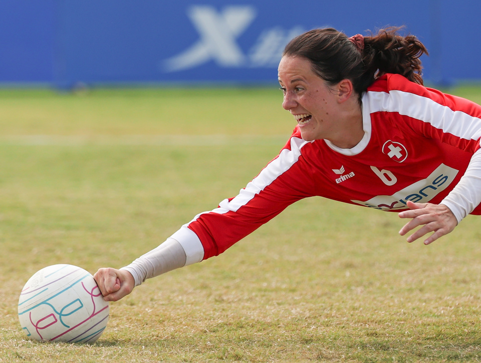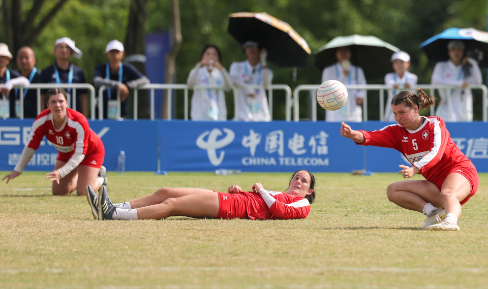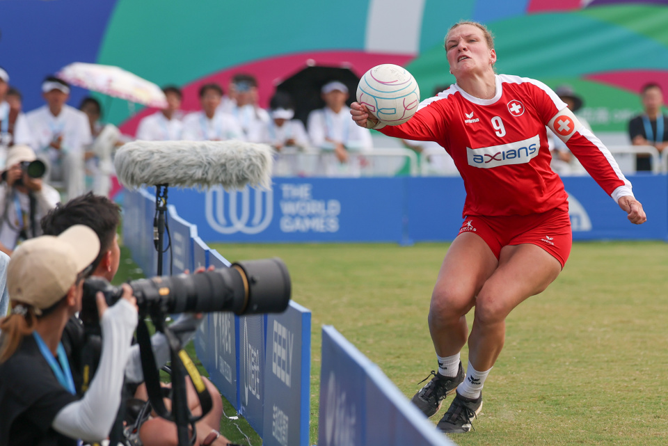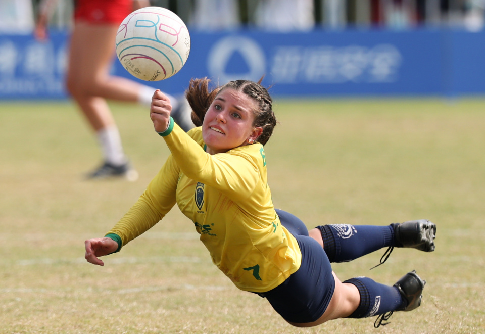 当日,在2025年成都世运会浮士德球女子决赛中,巴西队战胜瑞士队,获得冠军。8月13日,瑞士队球员塔尼娅·博格纳尔在比赛中。新华社记者 陈诚 摄