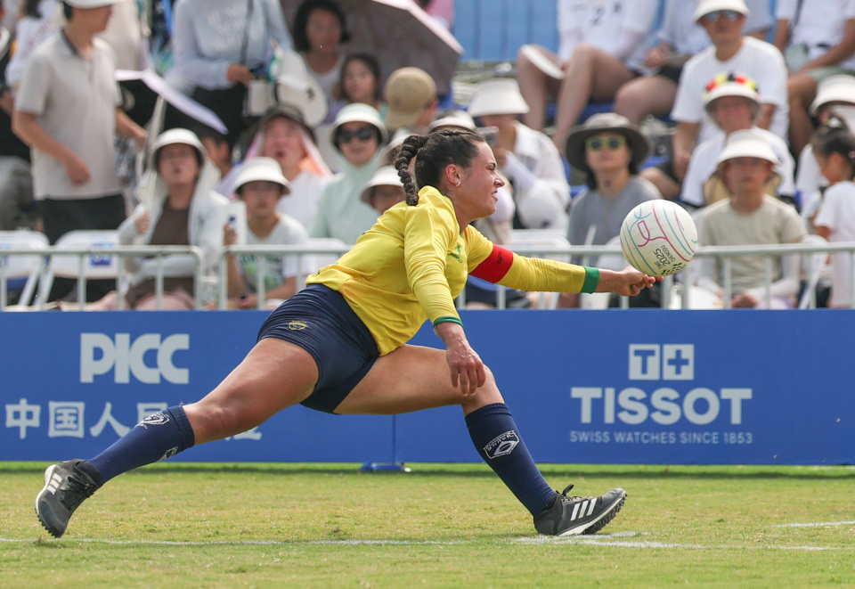 8月13日,巴西队球员茱莉亚在比赛中。新华社记者 陈诚 摄